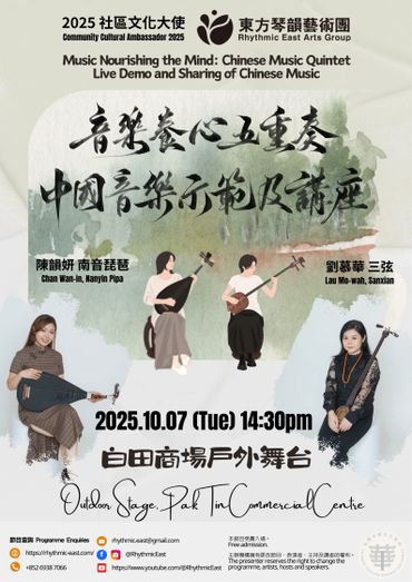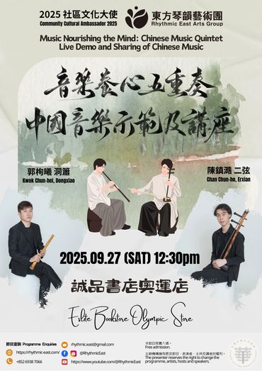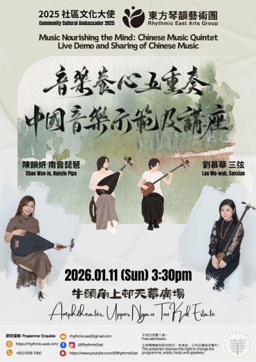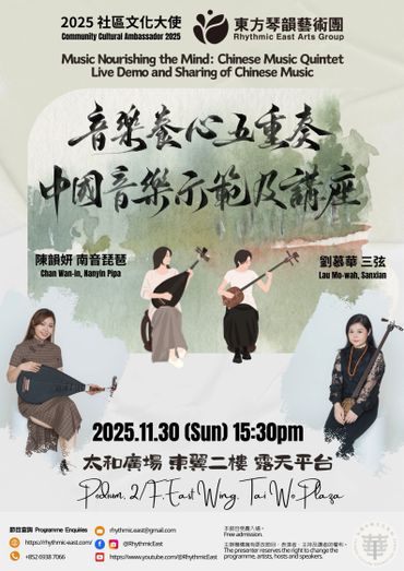 透過聲音導航及現場音樂演奏,引領觀眾探索中國音樂與心靈境界的內在關聯,以嶄新的角度認識中國音樂與文化。此計劃除介紹一系列「絲弦五重奏」現代中國室樂作品外,亦重點推介「南音上四管」樂隊,推廣並列聯合國教科文組織非物質文化遺產名錄、國家級非物質文化遺產代表性項目名錄及香港非物質文化遺產清單的非遺音樂,將古今中國音樂體裁兼收並蓄,在傳統與現代之間探索中國音樂的精神面貌,並反思與當今社會循環往復的深層文化關係。